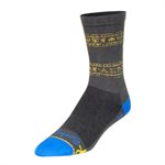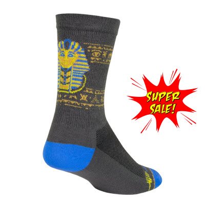 Walk like an Egyptian in these stoney grey crew socks inlaid with gold and royal blue Egyptian flair. Socks so soft, your feet feel like royalty.